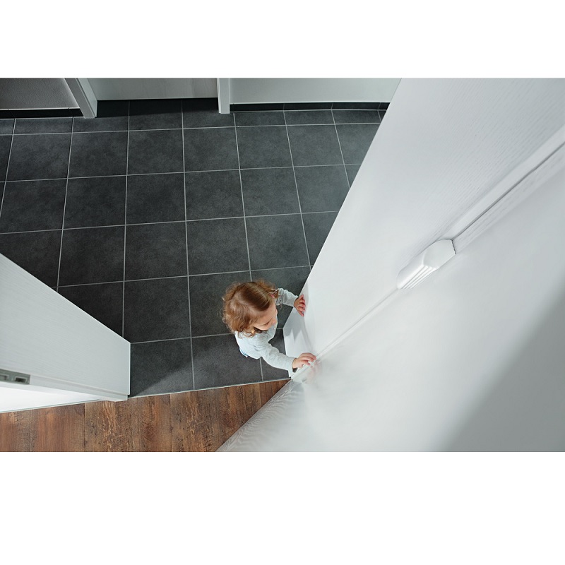 Einfach am Scharnier der Tür oder des Fensters eingehängt, verhindert NESSA, dass Türen und Fenster zum Beispiel durch einen Windstoß plötzlich zuschlagen. Kleinkinder und Babys können sich dadurch nicht in der Tür oder im Fenster einklemmen und möglicherweise verletzen.