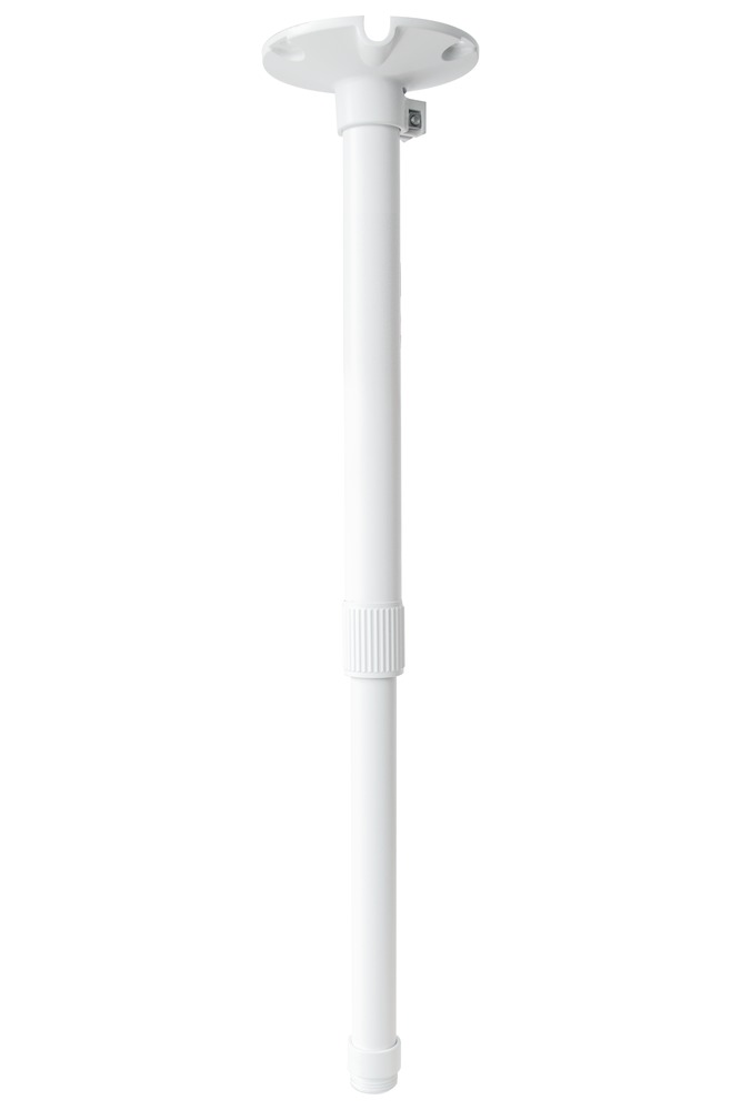 TELESKOPIERBARE DECKENHALTERUNG (60 - 102 cm)Bringen Sie Ihre Kameras perfekt in Position!Diese Deckenhalterung ist eine robuste und langlebige Lösung zur Befestigung einer Kamera im Innen- und Außenbereich. Die Aluminiumkonstruktion sorgt für eine hohe Stabilität und integriert sich mit ihrer dezenten Farbgebung in Weiß nahtlos in jede Umgebung.Mit der kompakten Montageplatte (Durchmesser 109 mm) wird die Halterung sicher und platzsparend an der Decke befestigt. Die ausziehbare Halterung kann von 60 cm bis 102 cm in der Höhe verstellt werden. Damit wird die Position und der Abstand der Kamera von der Decke an die individuelle Montagesituation angepasst. Dabei ermöglicht die in der Halterung integrierte Kabelführung eine saubere und professionelle Installation inkl. optimalem Schutz des Anschlusskabels vor Feuchtigkeit, Beschädigung oder Manipulation.Die Deckenhalterung ist ein optionales Zubehör für diverse Kamerainstallationsboxen aus dem ABUS Portfolio. Zu beachten ist die Tragkraft von bis zu 4,5 kg.