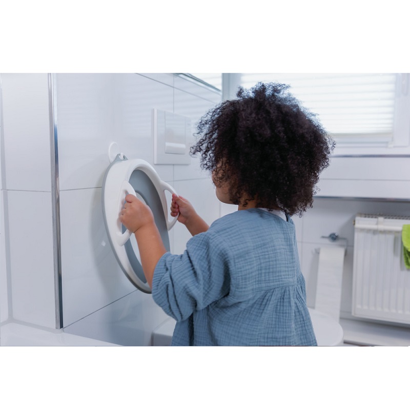 So eine Erwachsenentoilette ist furchtbar hoch, und der Sitz ist auch ganz schön breit! Unser Tipp: Helfen Sie Ihrem Kind mit dem Toilettentrainer MALTE, in seinem eigenen Tempo trocken zu werden. Ihr Wonneproppen sitzt darin sicher und kann sich an beiden Seiten an den Griffen festhalten. So können sich Kleinkinder nach und nach daran gewöhnen, aus dem Windelalter herauszuwachsen. Ebenso kann MALTE von der Größe auf die handelsüblichen Toilettensitze eingestellt werden. Dazu gibt's einen Wandhalter, an dem man MALTE einfach aufhängen kann. Dank der dezenten Farbe passt der Toilettentrainer nahezu in jedes Badezimmer.