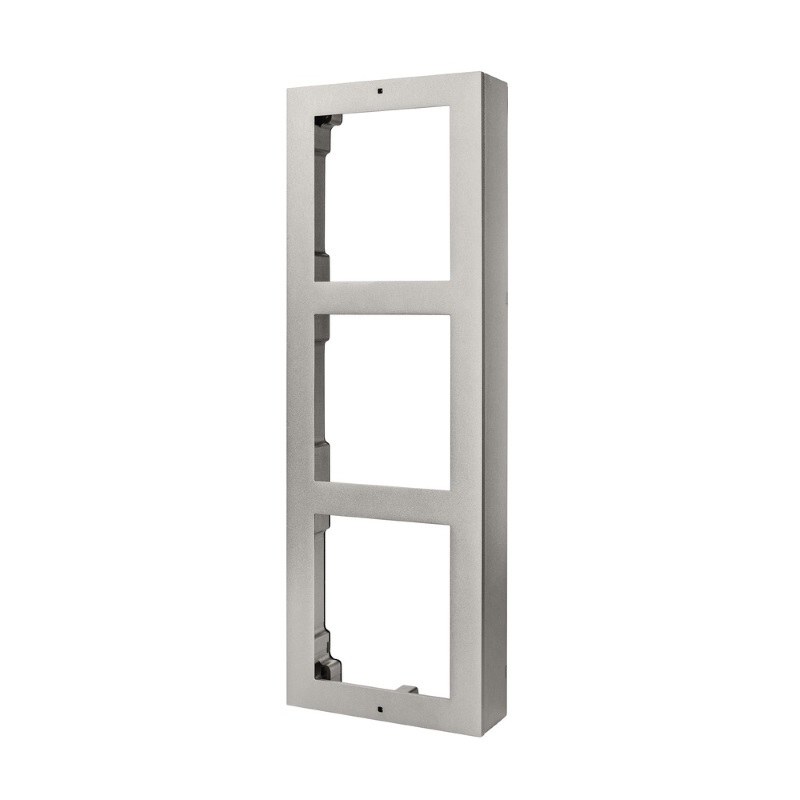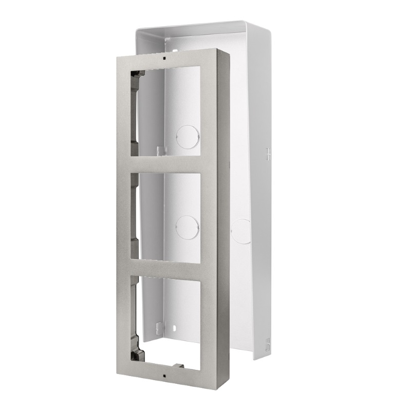 - Beim Einbau von ModuVis-Modulen (Videomodul, Klingeltasten-Modul usw.) haben Sie die Wahl zwischen Auf- und Unterputzmontage. Und Sie wählen zwischen einem 1-fach Einbaurahmen (für 1 Modul), 2-fach und 3-fach Rahmen (für 3 Module). Dieser Einbaurahmen ist zur Aufputzmontage geeignet. Bei der Aufputzmontage wird das Außengehäuse als robuster Schutz vor eindringender Feuchtigkeit empfohlen.
