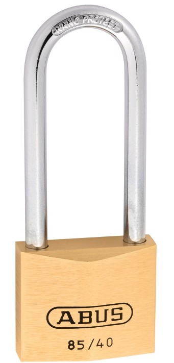 Das Vorhangschloss ABUS 85 eignet sich für die Absicherung von Taschen, Koffern, Schatullen, Kassetten sowie Türen, Toren, Schränken, Spinden, Werkzeugkisten, Kellern, Schuppen, Schaltanlagen usw. Der Schlosskörper besteht aus Messing, der Bügel aus gehärtetem Stahl. Hinter der Serie ABUS 85 verbirgt sich eine umfangreiche Hangschloss-Serie in Größen von 20 bis 70 mm sowie verschiedene Varianten mit hohem Bügel. Die Serie 85 ist ein Service-Schloss. Unter anderem werden gleichschließende Serien für größere industrielle Anwendungen angeboten.