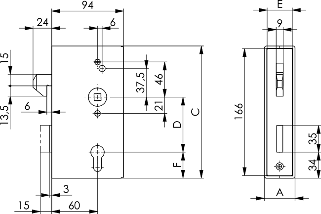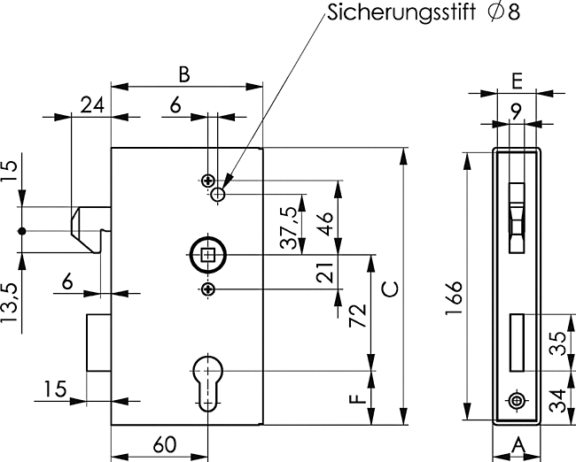 Produktinformationen "AMF Schiebetor-Schlosskasten 140S-50ZW, blank"