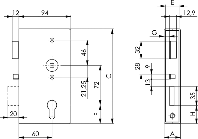 Vorgerichtet für Profilzylinder (PZ). Mit Wechsel.
