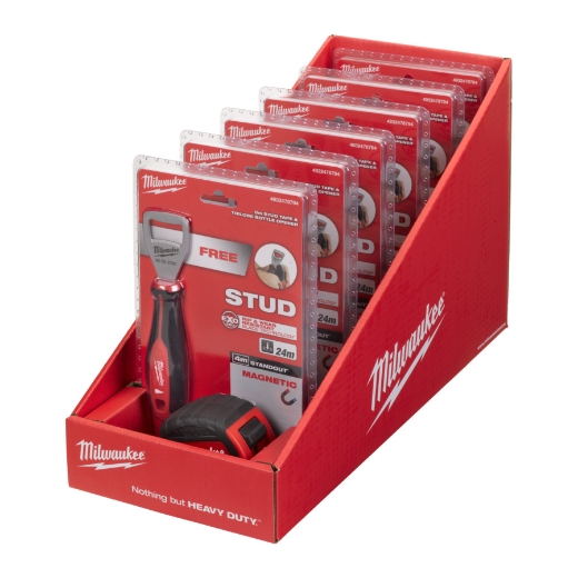 Das Milwaukee STUD Bandmaß ist für den harten Baustellenalltag entwickelt worden. Die Kombination aus robuster EXO 360° Beschichtung, magnetischem Endhaken und beidseitiger Skalierung garantiert höchste Funktionalität, selbst unter extremen Bedingungen. Der patentierte Fingerschutz erhöht zusätzlich die Sicherheit beim Arbeiten. Als nützliches Extra liegt dem Set ein Flaschenöffner mit komfortablem Tri-Lobe-Griff bei – für eine kleine Auszeit zwischendurch.