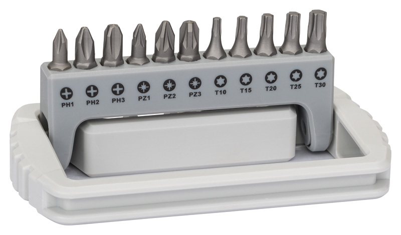 11-tlg. Extra Hard Kompaktes Schrauberbit-Set mit Bithalter. 11+1-tlg. Extra Hard Schrauberbit-Set Bits, Länge 25 mm, ISO 1173 C6.3, mit Quick Change-Universalhalter