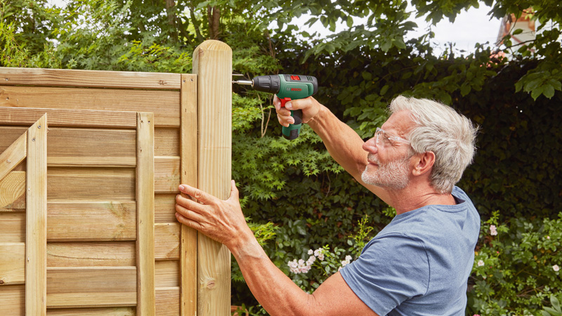 Akku-Bohrschrauber EasyDrill 1200. Kraftvolle Präzision: kompakt, leicht und vielseitig. Kompakt und leicht mit kompromissloser Leistung. Vorwählbare Einstellungen für optimale Leistung und Geschwindigkeit bei jeder Anwendung. Eine integrierte LED-Arbeitsleuchte sorgt für die gute Ausleuchtung des Werkstücks. Ideal für kleine Bohrprojekte in Holz und Metall sowie zum Schrauben. Einhülsenbohrfutter für schnelle und komfortable Zubehörwechsel. POWER FOR ALL: Ein Akku und ein Ladegerät für das komplette Home & Garden Gerätesystem. Doppelschrauberbit. Kartonschachtel