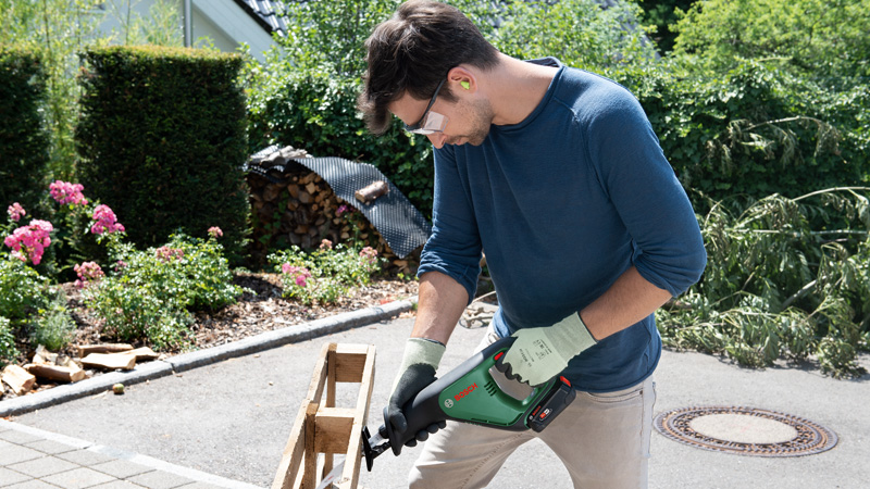 Akku-Kreissäge UniversalCirc 18V-53. Kraftvolle Kreissäge für präzise Geradschnitte. Geeignet für die meisten Holzanwendungen dank einer Schnittkapazität von 53 mm. Hartmetallbestücktes 160-mm-Premium-Sägeblatt Optiline für exaktes Sägen. Bosch Home & Garden Führungsschienensystem für präzise Gerad- und Gehrungsschnitte. Beeindruckende Schnittkapazität von 33 m pro 2,5-Ah-Akkuladung (bei 19-mm-Spanplatte). Ideal für den Bau von Regalen oder Zuschnitt von Terrassendielen. Saugeranschluss für eine Absaugrate von über 90 %. Kompatibel mit Bosch 18V POWER FOR ALL-Akku. Kreissägeblatt Optiline Wood (2 608 641 171). Absaugadapter (1 609 203 X86). Parallelanschlag (2 608 005 018). Kartonschachtel