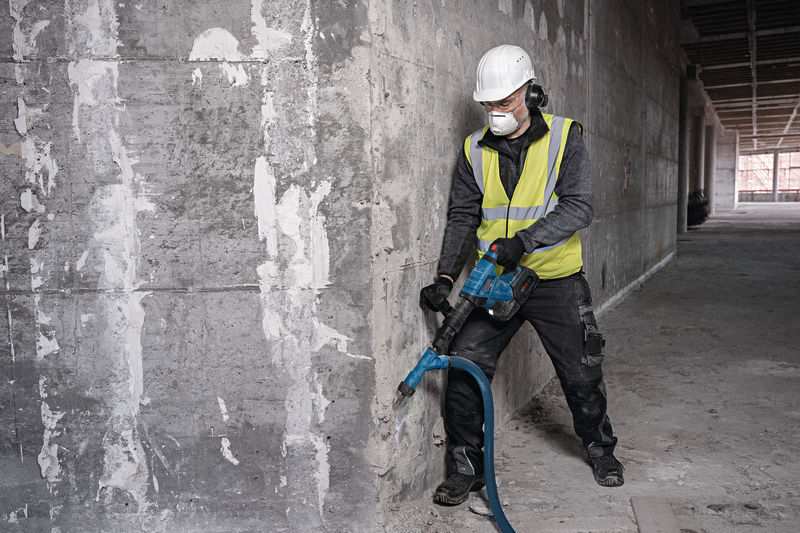 Akku-Schlaghammer mit SDS max GSH 18V-5, Die Arbeit mit großen Abbruchwerkzeugen ist schwer, insbesondere bei Arbeiten über Kopf oder in engen Räumen. Deshalb haben wir das GSH 18V-5 Professional entwickelt. Er bietet reduzierte Ermüdung und kabellose Freiheit mit einer kabelgebundenen Leistung von 8,5 J dank Brushless-Technologie. Dieses leichte und kompakte Gerät ist aufgrund seines effizienten Leistungsgewichts, des hochoptimierten Antriebsstrangs und des leistungsstarken Schlagwerks ideal für alle Arbeitspositionen. Darüber hinaus hast du mehr Kontrolle mit dem Soft-Start-Modus / Adaptive Speed Control (ASC) für präzises Meißeln und der Verriegelungstaste für kontinuierliches Arbeiten. Der GSH 18V-5 Professional eignet sich für Meißel-, Abbruch- oder Korrekturarbeiten, zum Entfernen von Fliesen, für Durchbrüche und zum Herstellen von Rinnen in Beton, Mauerwerk und Ziegeln. Es ist kompatibel mit dem Bosch Professional 18V System und mit der markenübergreifenden AMPShare Akku-Allianz. (Für maximale Leistung: ProCORE18V ≥ 5,5 Ah). Das Gerät hat außerdem zwei verschiedene Arbeitsmodi über eine einfache Benutzeroberfläche, Vario-Lock und eine LED-Arbeitsleuchte. 1 x XL-BOXX (1 605 438 1L9)