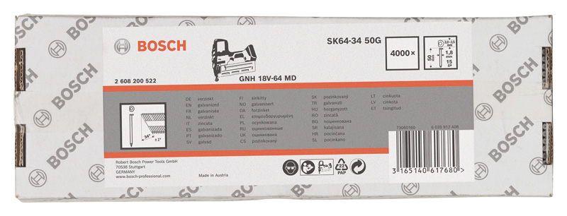 Produktinformationen "Bosch D-Kopf Streifennagel SN34DK 65RG,2,8 mm, 65 mm, verzinkt, gerillt, 3000er-Pack"