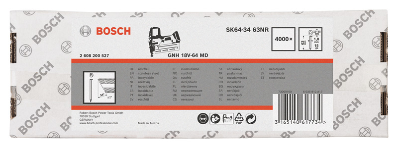 Produktinformationen "Bosch DA Senkkopf-Stift SK64-34 38G, 1,8mm, 38 mm, verzinkt, 4000er-Pack"