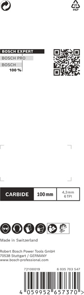 Hohe Lebensdauer bei sauberen Schnitten in Kohlefaser! Carbide-Leiste bietet Steifigkeit und Festigkeit Kohlefaser ist ein vielseitiges Material, das von vielen der anspruchsvollsten Industrien der Welt geschätzt wird. Es wird in der Luft- und Raumfahrt, beim Bootsbau und für Sportgeräte verwendet, aber es ist schwierig zu schneiden: Du benötigst ein Blatt, das sowohl hochtechnologisch als auch robust ist – wie das EXPERT Carbon Fiber. Technisch ausgereift und scharf, aber robust und belastbar: Das Bosch EXPERT Carbon Fiber Clean Stichsägeblatt ist das perfekte Zubehör für die Arbeit mit modernen Kunststoffverbundstoffen und Kohlefasern. Überragende Lebensdauer dank Bosch Carbide Technology
