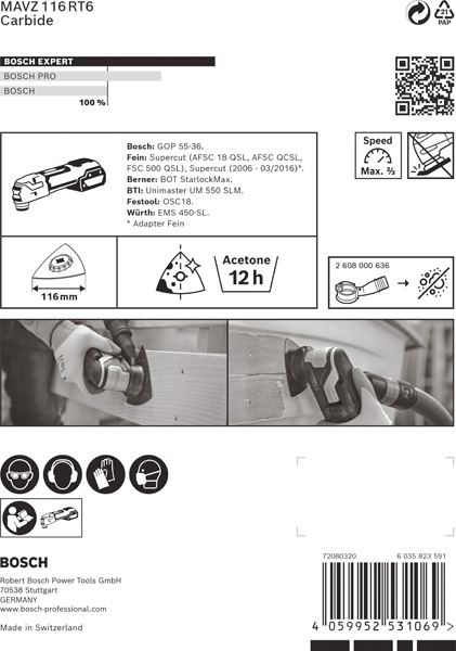 Produktinformationen "Bosch EXPERT Sanding Plate MAVZ 116 RT2 Blatt für Multifunktionswerkzeuge, 116 mm"