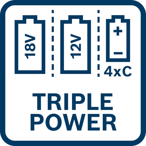| Stromversorgung: | 4 x 1.5-V-LR14 (C), 12 V-Li-Ionen-Akku, 18V-Li-Ion-Akku |