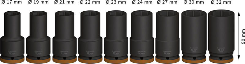 | Impact Socket Set: | 1/2", tief, 9‑teilig |