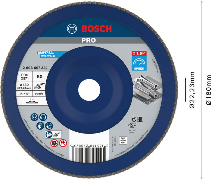 Produktinformationen "Bosch PRO X571 Fächerschleifscheibe, 115 mm, G120"