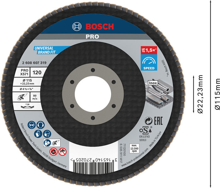 Bosch PRO X571 Fächerschleifscheibe, 115 mm, G60