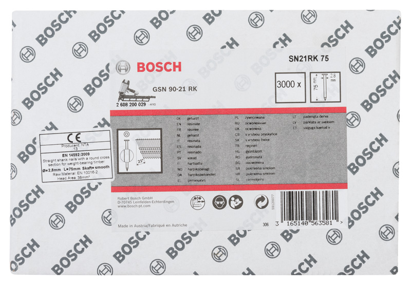Produktinformationen "Bosch Rundkopf-Streifennagel SN21RK 90 3,1 mm, 90 mm, blank, glatt, 2500er-Pack"