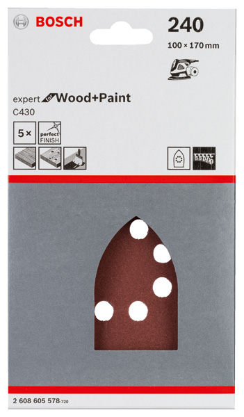 Bosch Schleifblatt C430, 100 x 170 mm, 60, 8 Löcher, Klett, 5er-Pack