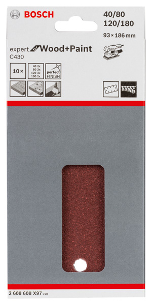 Bosch Schleifblatt C430, 115 x 280 mm, 40, 14 Löcher, 10er-Pack
