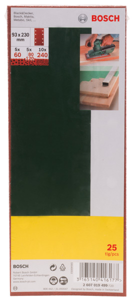 Produktinformationen "Bosch Schleifblatt-Set für Schwingschleifer, 8 Löcher, 93 x 230 mm, K 120, 25er-Pack"