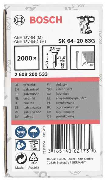 Produktinformationen "Bosch Senkkopf-Stift SK64 20G, 32 mm verzinkt, 2000 Stk."