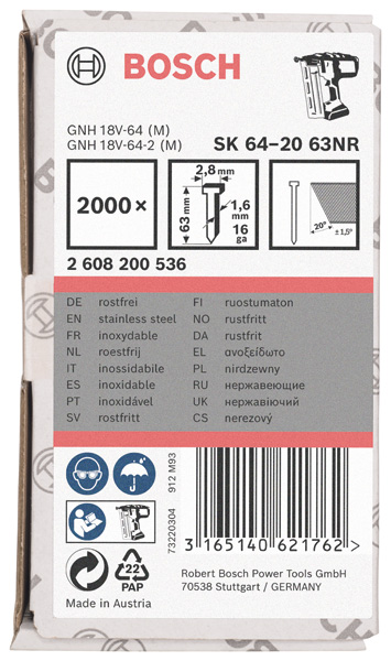 Produktinformationen "Bosch Senkkopf-Stift SK64 20G, 57 mm verzinkt, 2000 Stk."