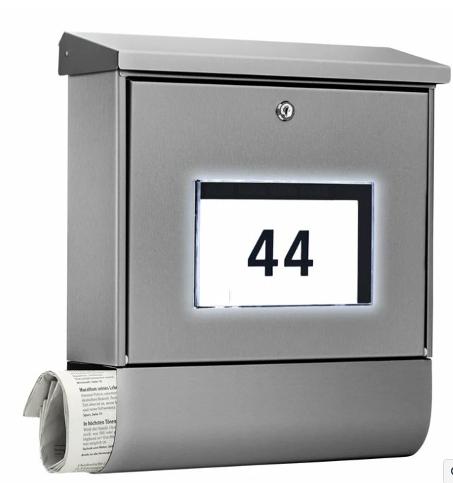 Die Besonderheit dieses Briefkastens ist das beleuchtete Hausnummernfeld auf der Front. Dieses ist mit LED-Beleuchtung ausgestattet und wird gänzlich durch die Energie der Sonne betrieben. Bei einsetzender Dämmerung, während der Nacht oder im Morgengrauen versorgt ein integrierter Akku die LEDs mit Strom.
