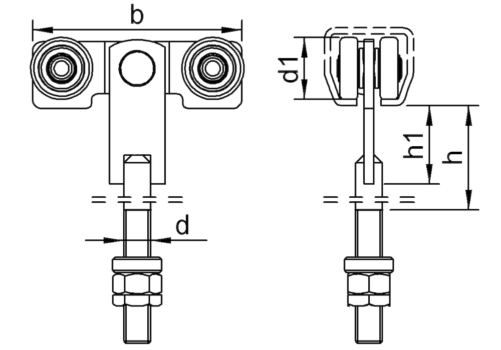 HELM Objekttür Doppelrollenwagen, Ausführung: doppelpaarig, Modellnummer: 420 L, Material: stahl, Oberfläche: galvanisch verzinkt, gelb chromatiert, Türwerkstoff: Holz, stahl, Türart: Falttür, Befestigungsart: zum Aufschrauben, Gewindedurchmesser: M16, Rollendurchmesser: 34 mm, Breite: 126 mm