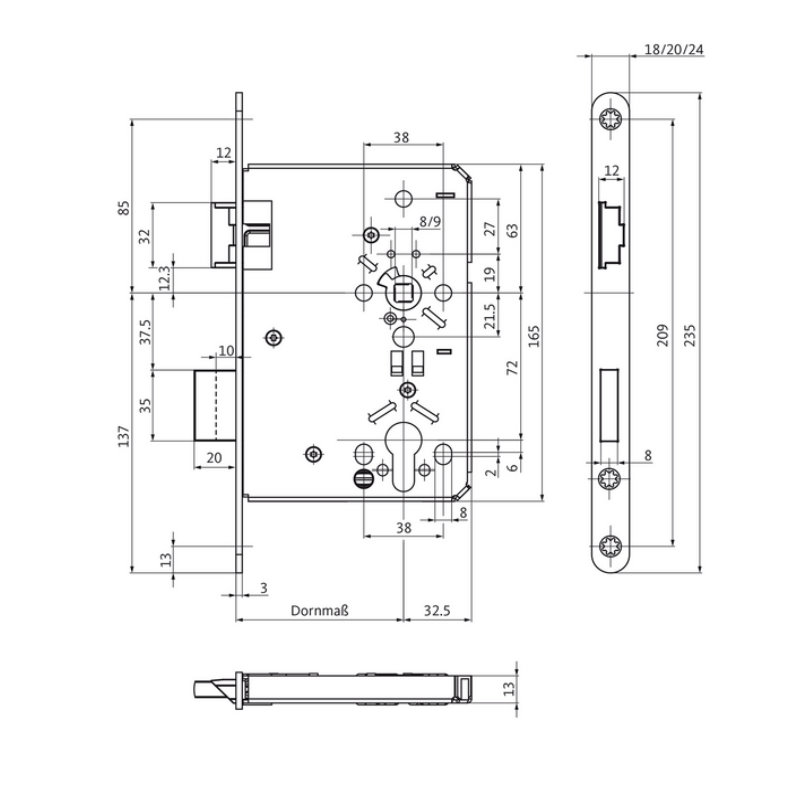 BKS Einsteckschloss Serie B-0515 - Eigenschaften
