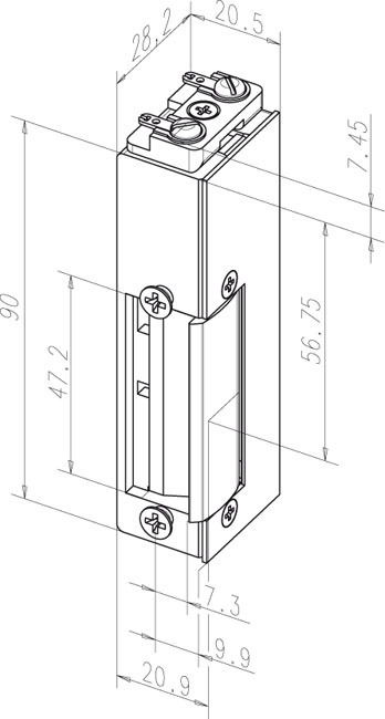 | Zusatzinformation: | geringer Abstand von Türöffnerfalle zur Gehäuseunterseite |