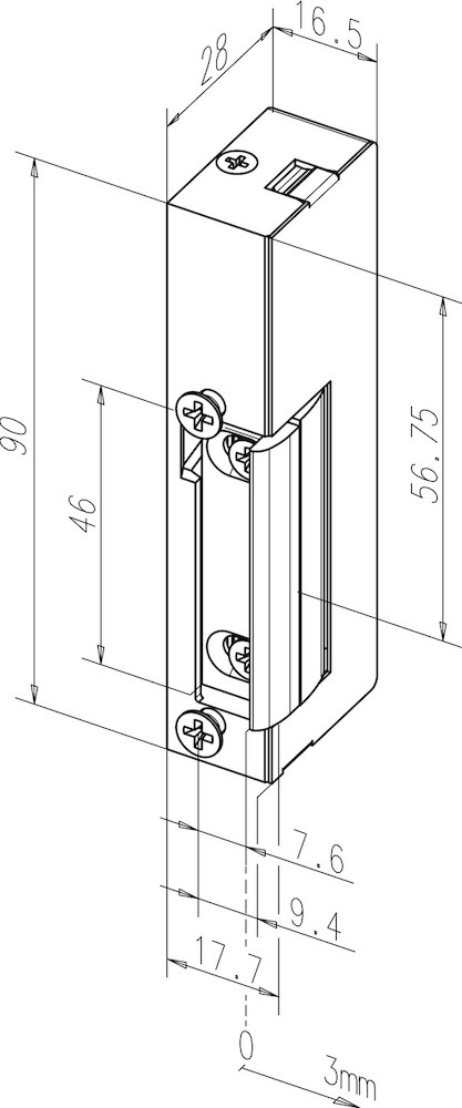 effeff, Türrahmen-Elektro-Türöffner, Modellnummer: 29, Ausführung: ohne Schließblech, Bauform: asymmetrisch, Ergänzung: mit Arretierung, mit verstellbarer Falle, DIN-Richtung: DIN Links-Rechts, Einbaulage: senkrecht, waagerecht, Entriegelung: ohne, Funktion: Arbeitsstrom, Befestigungsart: zum Einlassen, Material Gehäuse: Zinkdruckguss, Einzelteilmaterial Falle: Zinkdruckguss, Einzelteilmaterial Aufschraubstück: Messing, Öffnerbreite: 16,5 mm, Öffnerhöhe: 90 mm, Öffnertiefe: 28 mm, Spannung min.: 6 V, Spannung max.: 12 V, Spannungsart: AC/DC, Stromanschluss: klemmbar, steckbar, Stromart: AC/DC, Stromaufnahme AC bei 6V: 550 mA, Stromaufnahme AC bei 12V: 1100 mA, Stromaufnahme DC bei 6V: 780 mA, Stromaufnahme DC bei 12V: 1560 mA, Fallenvorlast AC max. bei 6V: 150 N, Fallenvorlast AC max. bei 12V: 120 N, Fallenvorlast DC max. bei 6V: 10 N, Fallenvorlast DC max. bei 12V: 30 N, Aufbruchfestigkeit: 3000 N, Betriebstemperatur min.: -15 °C, Betriebstemperatur max.: 40 °C, Nennwiderstand: 7,7 O, Türart: Abschlusstür, Türausprägung: Türe gefälzt, Türe stumpf, Türflügelanzahl: einflügelig, Rahmenwerkstoff: Holz, Aluminium, Kunststoff