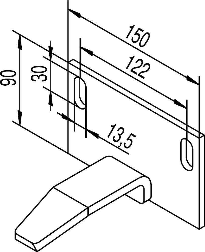 HELM Schiebetor Fangstück, Modellnummer: 500 F, für Profil-Nr.: 500, Material: stahl, Farbton: blau chromatiert, Oberfläche: galvanisch verzinkt, Länge Anschraubplatte: 150 mm, Höhe Anschraubplatte: 90 mm, Befestigungsabstand Anschraubplatte: 122 mm