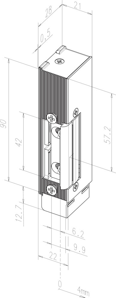 effeff, Türrahmen-FH-Türöffner, Modellnummer: 142U, Ausführung: ohne Schließblech, Bauform: asymmetrisch, Ergänzung: mit verstellbarer Falle, verstellbar, mit Diode, mit Fixrillen, mit elektrischer Dauerentriegelung, DIN-Richtung: DIN Rechts, Einbaulage: senkrecht, waagerecht, Entriegelung: ohne, Funktion: Arbeitsstrom, Kompatibel: zu Standard Schließblech, Befestigungsart: zum Einlassen, Öffnerbreite: 21 mm, Öffnerhöhe: 103 mm, Öffnertiefe: 28 mm, Verstellbereich Falle: 4 mm, Spannung min.: 12 V, Spannung max.: 24 V, Spannungsart: AC/DC, Stromanschluss: klemmbar, steckbar, Stromaufnahme AC bei 12V: 130 mA, Stromaufnahme AC bei 24V: 70 mA, Stromaufnahme DC bei 12V: 210 mA, Stromaufnahme DC bei 24V: 105 mA, Fallenvorlast AC max.: 50 N, Fallenvorlast DC max.: 10 N, Aufbruchfestigkeit: 6.500 N, Betriebstemperatur min.: -15 °C, Betriebstemperatur max.: 40 °C, Nennwiderstand bei 12V: 57,5 O, Nennwiderstand bei 24V: 230 O, Türart: Abschlusstür, Türausprägung: Türe gefälzt, Türe stumpf, Türflügelanzahl: einflügelig, Rahmenwerkstoff: Holz, Aluminium, Kunststoff, Zulassung: für Feuerschutz, Norm: DIN EN 14846, Zusatzinformation: 12/24 Volt umschaltbar für AC und DC Betrieb