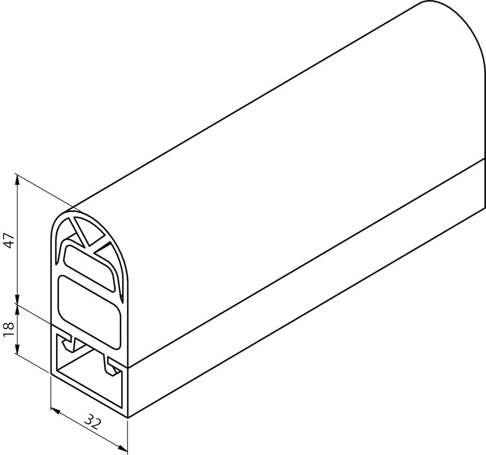 HELM Schiebetor Fingerschutzprofil, Modellnummer: 65, Ausführung: mit C-Schiene, Material Fingerschutzprofil: Gummi, Material C-Schiene: aluminium, Breite: 32 mm, Höhe: 65 mm, Höhe C-Schiene: 18 mm