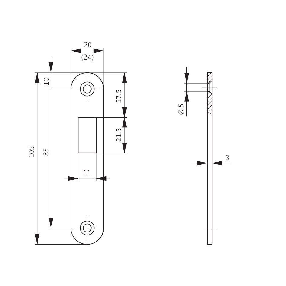 BKS Türrahmen Flachschließblech, Modellnummer: S413, Anwendung: für Zirkelriegel, Material: stahl, Ausführung: für Schiebetür, Schließblechbreite: 20 mm, Schließblechausführung: kantig, DIN-Richtung: DIN Links-Rechts, Farbton: nickelsilber, Oberfläche: lackiert, Türausprägung: Türe stumpf, Türflügelanzahl: einflügelig, Rahmenwerkstoff: Holz, aluminium, Kunststoff, stahl, Befestigungsart: zum Aufschrauben, Schließblechlänge: 105 mm, Schließblechstärke: 3 mm, Türart: Schiebetür