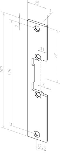 effeff, Türrahmen-Flachschließblech, Ausführung: für Türöffner, kurz, Modellnummer: 120, Material: Edelstahl, DIN-Richtung: DIN Links-Rechts, Farbton: edelstahl, Oberfläche: geschliffen, Ausfräsung: mit Fallenausschnitt, Türausprägung: Türe stumpf, Türflügelanzahl: einflügelig, Befestigungsart: zum Aufschrauben, Anzahl Befestigungsbohrungen: 2 St., Schließblechbreite: 25 mm, Schließblechlänge: 160 mm, Schließblechstärke: 3 mm, Schließblechausführung: kantig, Vorgerichtet: für Standardanwendungen, außer ProFix®-Varianten, Türart: Objekttür, Haustür, Rahmenwerkstoff: Holz, Aluminium, Kunststoff