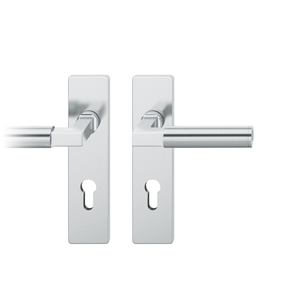 Produktinformationen "FSB Drückergarnitur 72 1102, Kurzschild, eckig, Profilzylinder gelocht, Entfernung 72mm, Vierkant 8mm, DIN Rechts, Türstärke 39 - 48mm, Befestigungstechnik mit Stütznocken, grau, edelstahl, fein matt,35°"