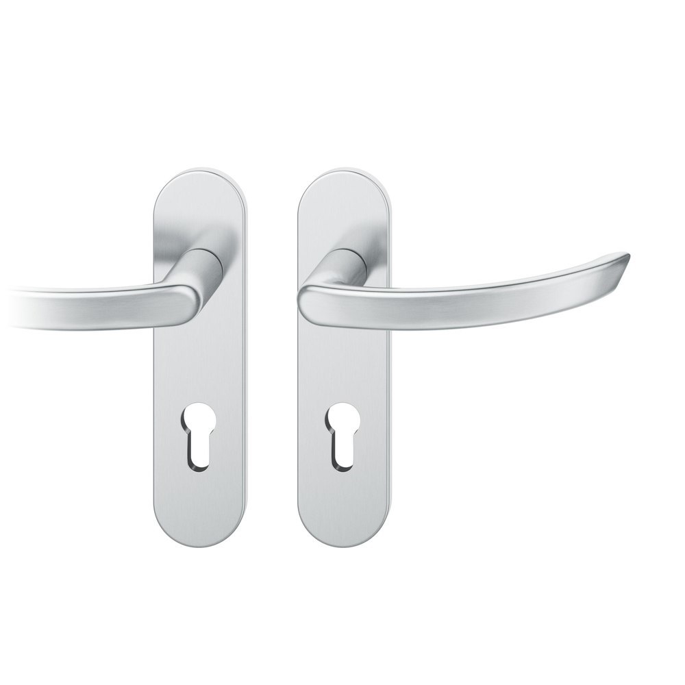 Produktinformationen "FSB Drückergarnitur 72 1119, Kurzschild, oval, Profilzylinder gelocht, Entfernung 72mm, Vierkant 8mm, DIN Links, Türstärke 39 - 48mm, Befestigungstechnik mit Stütznocken, grau, edelstahl, fein matt,35°"