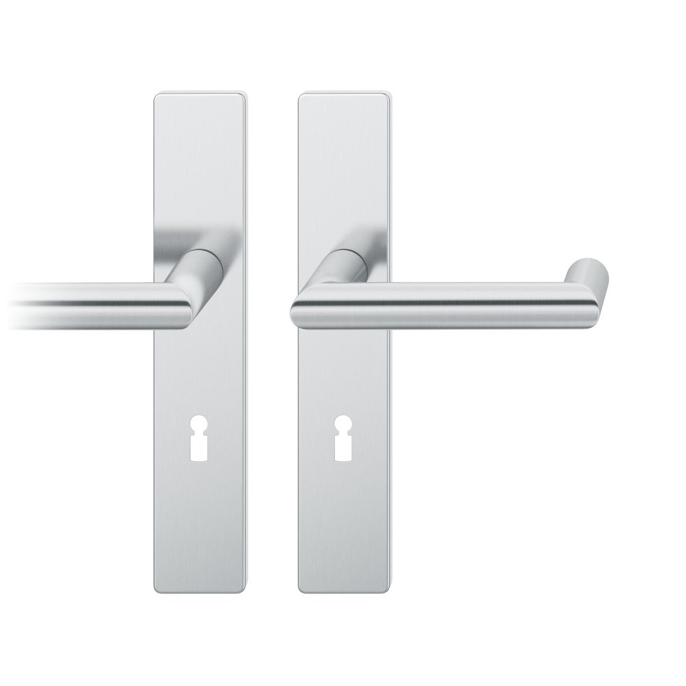 Produktinformationen "FSB Drückergarnitur 12 1016, Langschild, eckig, Buntbart gelocht, Entfernung 72mm, Vierkant 8mm, DIN Links-Rechts, Türstärke 39 - 58mm, mit Stütznocken, edelstahl fein matt, Adapter-Standardlager"