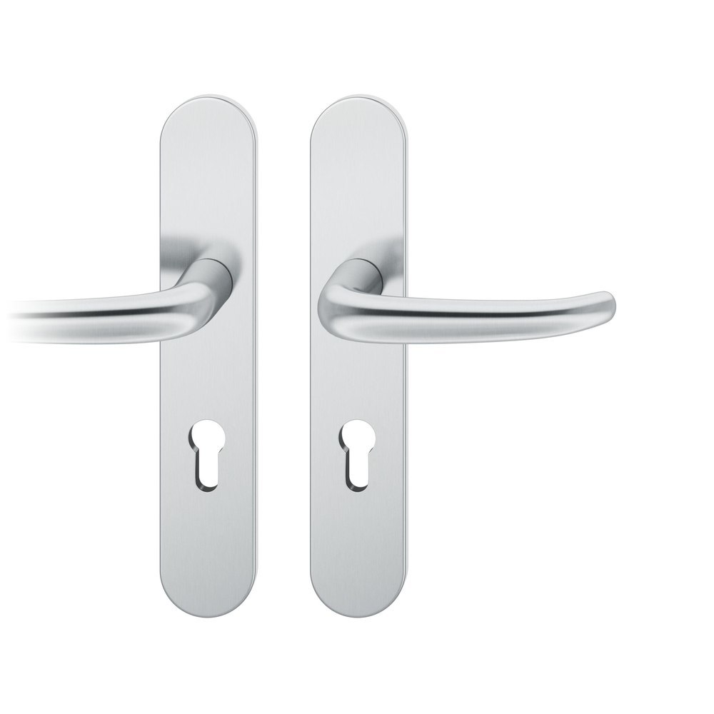Produktinformationen "FSB Drückergarnitur 12 1023, Langschild, oval, Profilzylinder gelocht, Entfernung 72mm, Vierkant 8mm, DIN Links-Rechts, Türstärke 39 - 58mm, mit Stütznocken, edelstahl fein matt, Adapter-Standardlager"