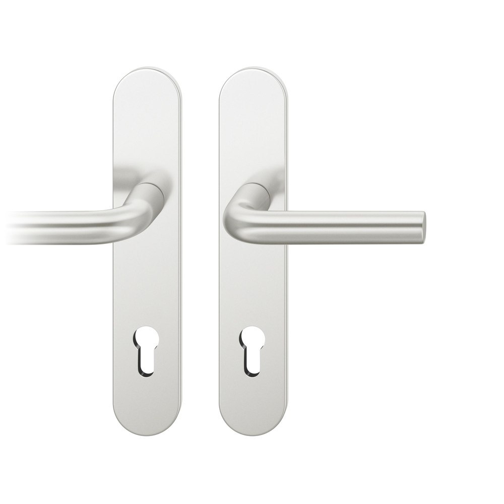 Produktinformationen "FSB Drückergarnitur 12 1075, Langschild, oval, Profilzylinder gelocht, Entfernung 88mm, Vierkant 8,5mm, DIN Links-Rechts, Türstärke 39 - 58mm, mit Stütznocken, naturfarben eloxiert, Adapter-Standardlager"