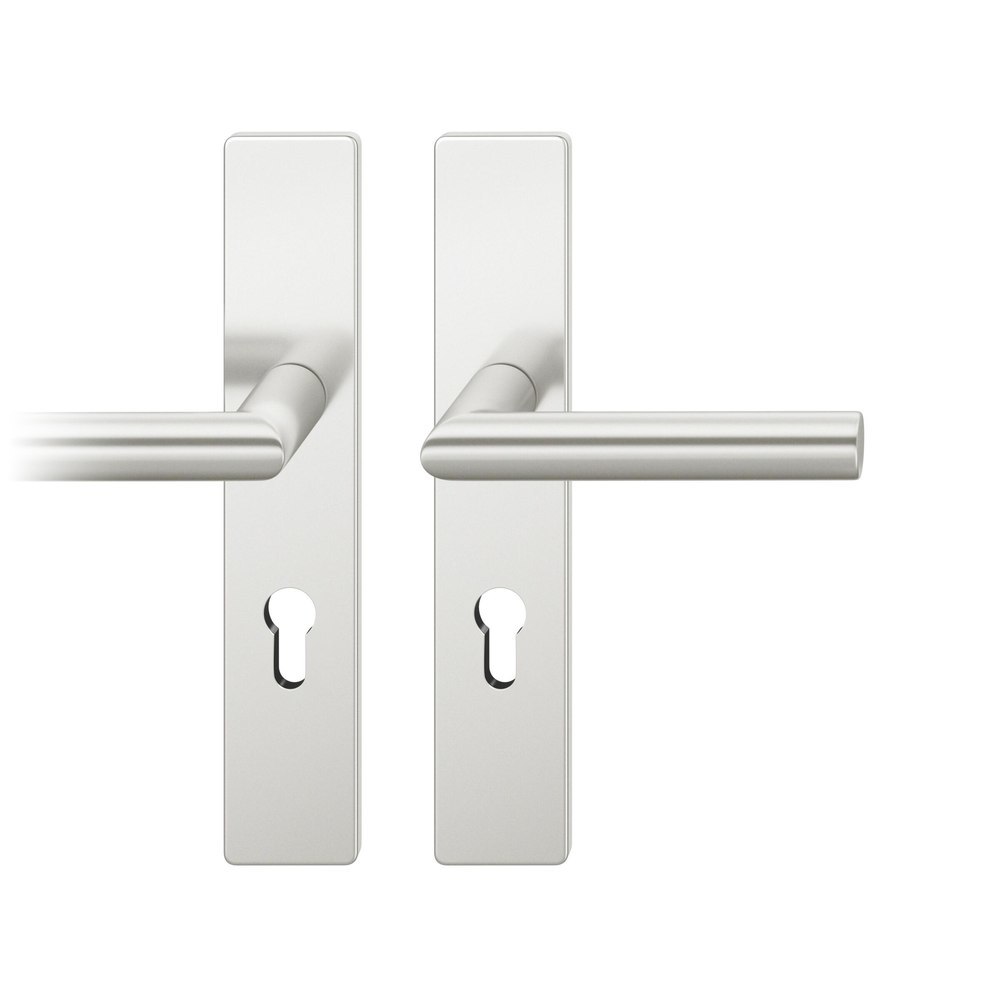 Produktinformationen "FSB Drückergarnitur 12 1076, Langschild, eckig, Profilzylinder gelocht, Entfernung 72mm, Vierkant 8mm, DIN Links-Rechts, Türstärke 39 - 58mm, mit Stütznocken, naturfarben eloxiert, Adapter-Standardlager"
