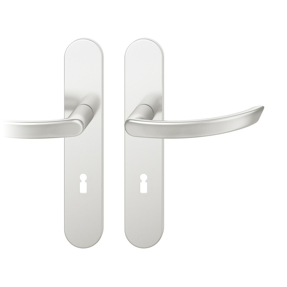 FSB Drückergarnitur 12 1119, Langschild, oval, Buntbart gelocht, Entfernung 72mm, Vierkant 8mm, DIN Links-Rechts, Türstärke 39 - 58mm, mit Stütznocken, naturfarben eloxiert, Adapter-Standardlager