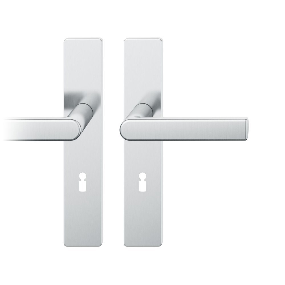 Produktinformationen "FSB Drückergarnitur 12 1244, Langschild, eckig, Buntbart gelocht, Vierkant 8,5mm, DIN Links-Rechts, Türstärke 39 - 58mm, mit Stütznocken, edelstahl fein matt, Adapter-Standardlager"