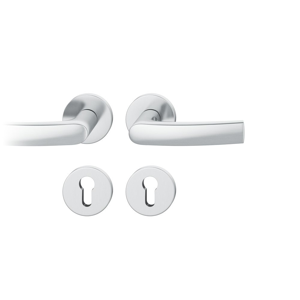 Produktinformationen "FSB Drückergarnitur 12 1015, Rosette, rund, Profilzylinder gelocht, Vierkant 8,5mm, DIN Links-Rechts, Türstärke 39 - 58mm, mit Stütznocken, edelstahl fein matt Adapter-Standardlager"