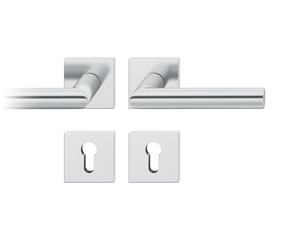 Produktinformationen "FSB Drückergarnitur 12 1076, Rosette, eckig, Profilzylinder gelocht, Vierkant 8mm, DIN Links-Rechts, Türstärke 39 - 58mm, mit Stütznocken, edelstahl fein matt Adapter-Standardlager"