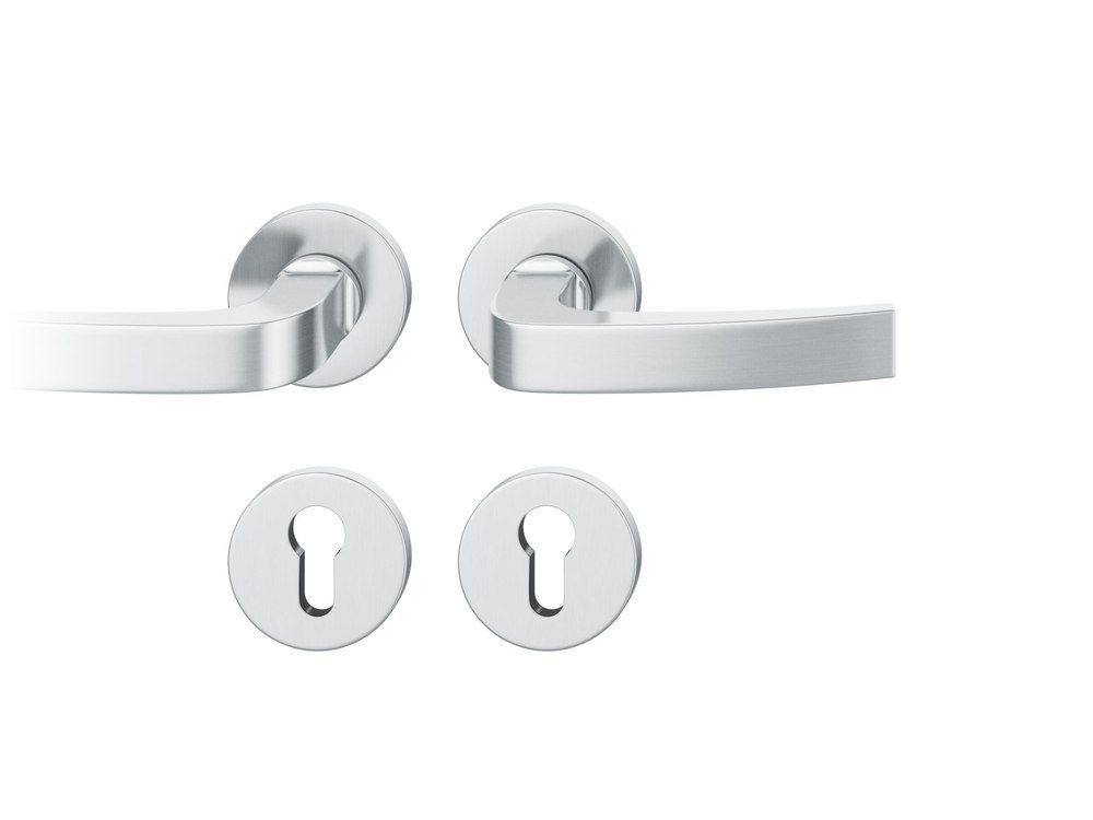 ASL Drückergarnitur 8mm PZ Rundrosette max. 45°. TS 39-58mm Edelstahl fein matt