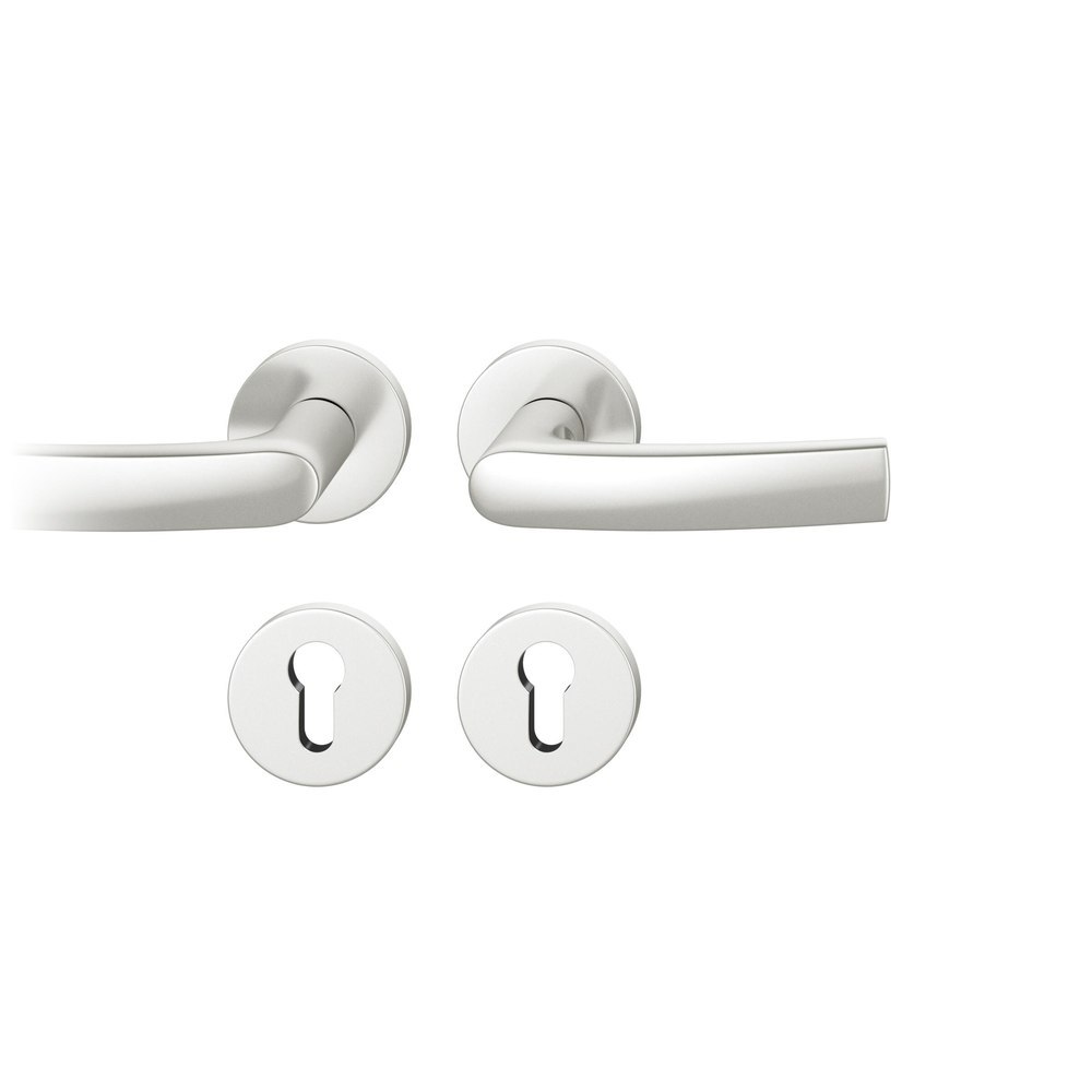FSB Drückergarnitur 72 1015; Produkttyp: Drückergarnitur; Produkttyp (Hersteller): Drückergarnitur; Ausführung: Rosette; Befestigungsart Drückerrosette (außen): verdeckt verschraubt; Befestigungsart Drückerrosette (innen): verdeckt verschraubt; Befestigungsart Schlüsselrosette (außen): verdeckt verschraubt; Befestigungsart Schlüsselrosette (innen): verdeckt verschraubt; Befestigungstechnik: mit Stütznocken; Montageart: aufliegend; Form Drückerrosette: rund; Form Schlüsselrosette (außen): rund; Form Schlüsselrosette (innen): rund; Vierkant: 8 mm; Material: Aluminium; Material Unterkonstruktion (Griffrosette): Kunststoff-Edelstahlverbundbau; Form Türgriff (innen): gebogen; Form Türgriff (außen): gebogen; Breite Türgriff (innen): 22 mm; Durchmesser Schlüsselrosette: 55 mm; Breite Türgriff (außen): 22 mm; Länge Türgriff (innen): 122 mm; Länge Türgriff (außen): 122 mm; Höhe Türgriff (innen): 55 mm; Höhe Türgriff (außen): 55 mm; Durchmesser Drückerrosette (außen): 55 mm; Durchmesser Drückerrosette (innen): 55 mm; Höhe Drückerrosette (außen): 7 mm; Höhe Drückerrosette (innen): 7 mm; Höhe Schlüsselrosette (außen): 7 mm; Höhe Schlüsselrosette (innen): 7 mm; Lagerung: mit Rückholfeder, Ausgleichslager® 3, festdrehbar; Einsatzbereich: Objekttür; Türart: Vollblatt; Türwerkstoff: Holz, Stahl; Lochung: Profilzylinder gelocht; DIN-Richtung: DIN Links; Farbe: silber; Farbton: naturfarben; Oberfläche: eloxiert; Material Unterkonstruktion (Schlüsselrosette): Kunststoff-Edelstahlverbundbau; Betätigungswinkel max.: 35 °; Türstärke min.: 39 mm; Türstärke max.: 48 mm; Norm: DIN EN 1906; EN 1906 - Gebrauchskategorie: Klasse 4; EN 1906 - Dauerhaftigkeit: Klasse 7; EN 1906 - Türmasse: -; EN 1906 - Feuerbeständigkeit: Klasse 0; EN 1906 - Sicherheit: Klasse 1; EN 1906 - Korrosionsbeständigkeit: Klasse 5; EN 1906 - Einbruchschutz: Klasse 0; EN 1906 - Ausführungsart: Typ B; Klassifizierungsschlüssel EN 1906: 47-0150B