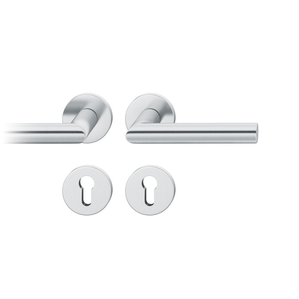 FSB Drückergarnitur 72 1076, Rosette, rund, Profilzylinder gelocht, Vierkant 8mm, DIN Rechts, Türstärke 39 - 48mm, mit Stütznocken, edelstahl fein matt Ausgleichslager® 3