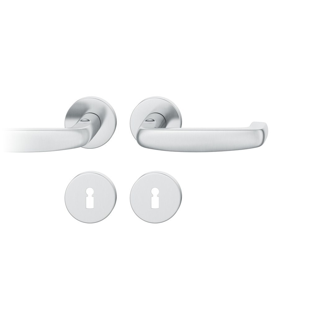 Produktinformationen "FSB Drückergarnitur 72 1159, Rosette, rund, Buntbart gelocht, Vierkant 8mm, DIN Rechts, Türstärke 39 - 48mm, mit Stütznocken, edelstahl fein matt Ausgleichslager® 3"
